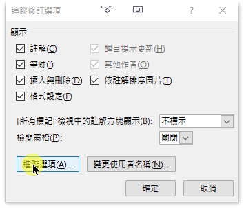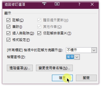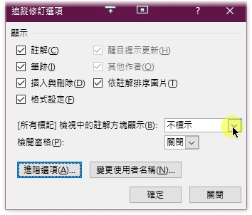- 在追蹤修訂的頁籤點選右下角小箭頭